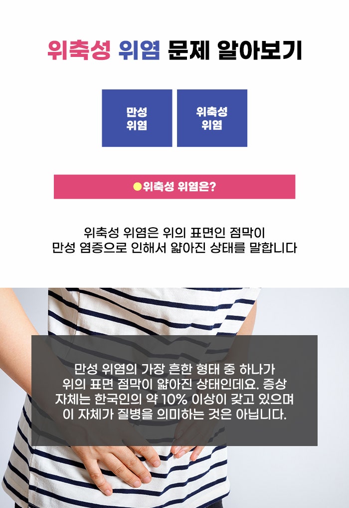특히 위염 문제는 오래 이어지면서 위암의 발생 확률이 올라갈 수 있는데요. 위의 표면 점막이 얇아지는 위축성 위염 상태가 될 수도 있다고 하는데요. 현재 잦은 목 통증, 가슴 부위의 쓰림, 복통, 소화불량으로 고생하고 있다면 위 건강을 챙길 수 있다면 좋겠습니다.