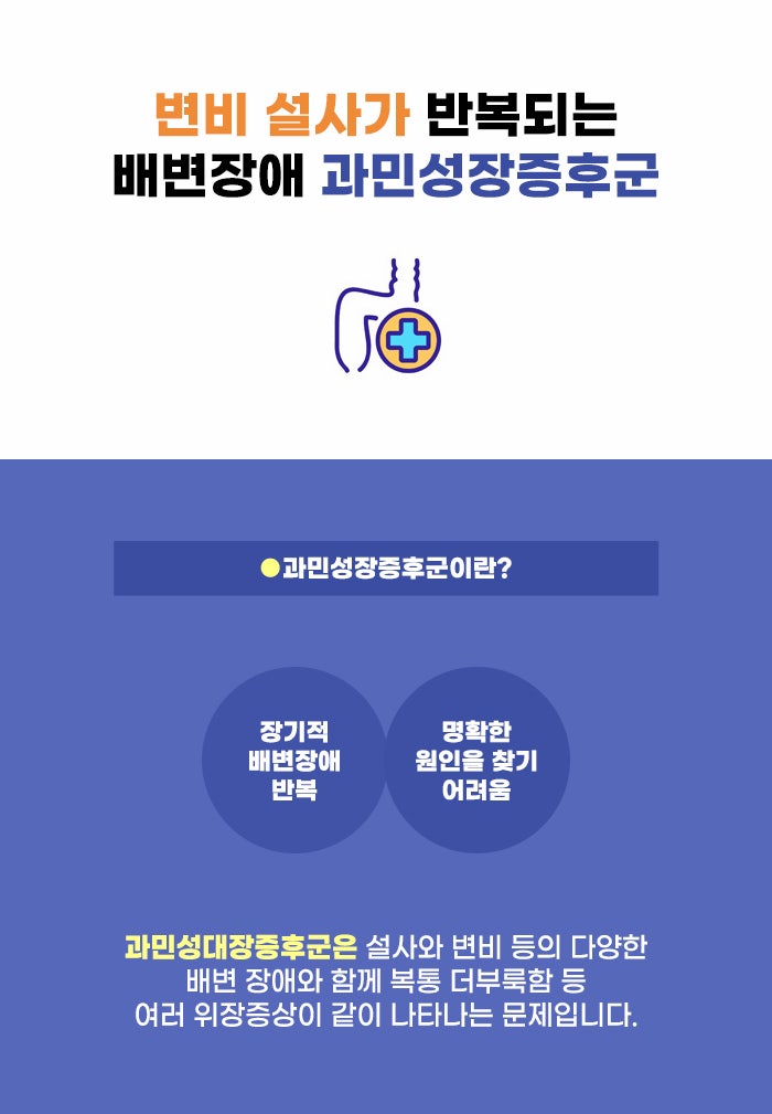 스트레스, 바쁜 생활, 잘못된 식사 습관 등은 위경련과 소화불량, 위염 등을 불러오기도 합니다. 그리고 소화 후 남은 찌꺼기를 배출하는 배변 활동에 영향을 미칠 수도 있다고 합니다. 묽은 변을 보는 설사, 배변 횟수가 적어지고 배변이 힘들어지는 변비 등이 대표적인 배변 장애 문제인데요. 특히 이유를 명확하게 알기 어렵지만, 반복적인 배변 장애를 겪을 경우 과민성장증후군 정보를 알아봐야 할 수도 있다고 하니 참고하셨으면 좋겠습니다.