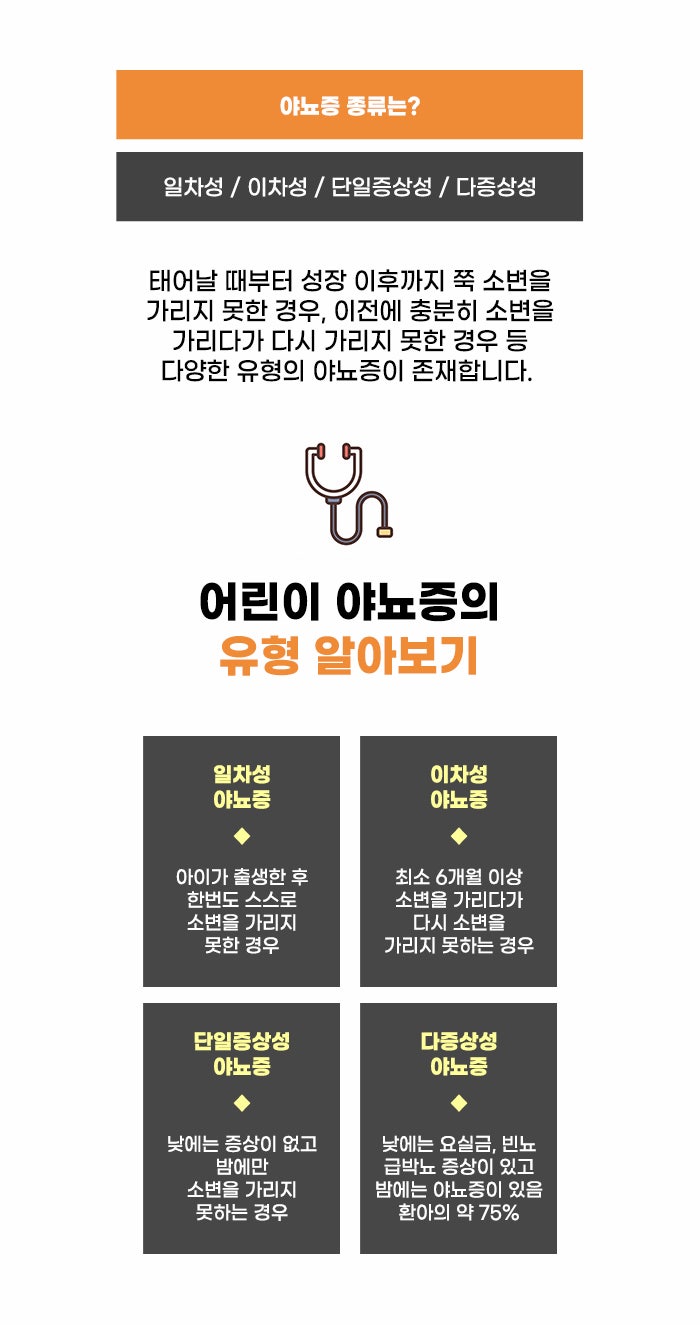 이렇게 급박뇨 증상이나 빈뇨 증상 등이 낮 동안에도 나타나며, 밤에는 야뇨증으로 고민하는 경우 다증상성 야뇨증으로 보기도 합니다. 그리고 밤에만 야뇨증으로 파주 운정 야뇨증 고민하는 경우 단일 증상성 야뇨증으로 보기도 합니다. 다증상성 야뇨증이 가장 흔한 편이라고 합니다. 또한 일차성 야뇨증과 이차성 야뇨증이 있습니다.