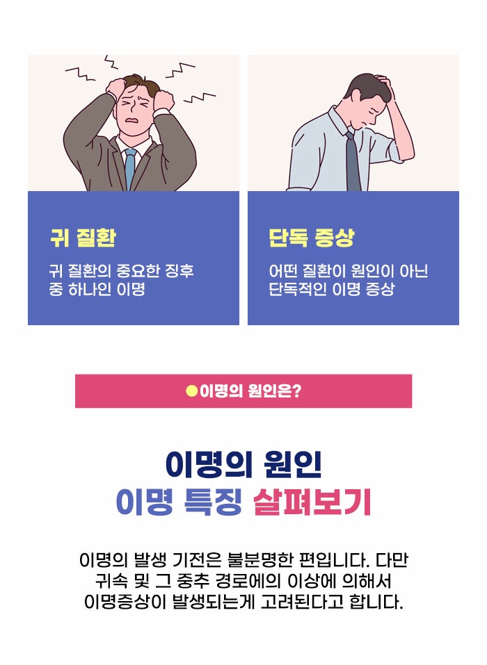 소리는 내 마음대로 차단하기 어려운데요, 귀마개를 사용하거나 기능이 있는 이어폰을 사용해도 원치 않는 소리를 전혀 듣지 않는 것은 어렵습니다. 최근에는 아파트 층간소음도 큰 이슈가 되고 있기도 합니다. 그런데 다른 사람도 함께 듣는 소리로 힘든 경우도 있지만, 다른 사람에게는 들리지 않고, 나만 아는 소리 때문에 힘든 경우도 있는데요. 일반적인 소리 자극이 없는데 소리를 듣는 것을 두고 이명이라고 합니다.