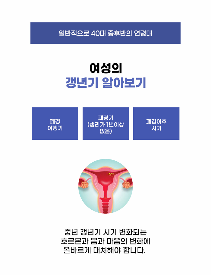 생리가 완전히 없어지는 폐경이 나타난 후 약 1년까지를 폐경 이행기라고 하며 더 흔하게 부르는 말은 갱년기입니다. 갱년기는 1~2년 정도의 짧은 시기가 아닌데요, 실제로는 약 4~7년 정도의 상당히 긴 기간을 가르킵니다. 갱년기 증후군을 그냥 참고 넘겨선 안될 이유가 되기도 하는데요, 긴 시간 동안 갱년기를 겪는 만큼 파주갱년기 증후군을 어떻게 다스리는지에 따라서 삶의 질도 상당히 차이가 날 수 있습니다.