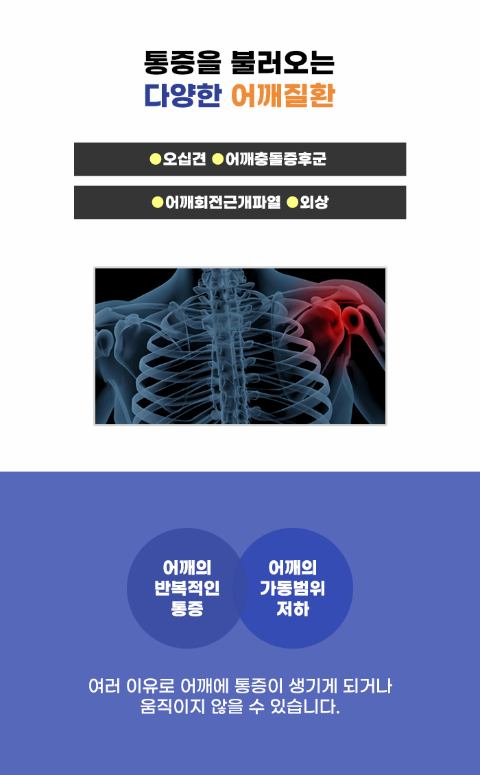 교통사고 등 외상으로 인해 어깨 부분에 통증이 생기기도 하지만, 그 밖의 여러 질환으로 인해 어깨 부분에 통증이 발생할 수도 있다고 합니다. 유착성 관절낭염이나, 어깨충돌증후군, 어깨회전근개파열이 그 예인데요. 어깨회전근개는 어깨 주변을 덮고 안정적인 어깨 운동이 가능하도록 돕는 근육입니다.