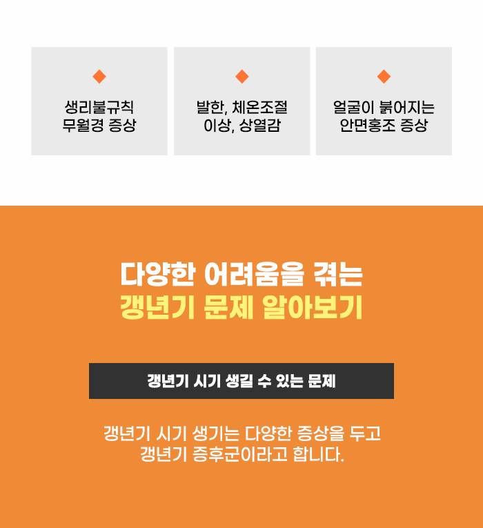 급성 여성호르몬 결핍으로 인해 갱년기 증후군을 겪기 쉬운 갱년기에는 다양한 신체적 변화, 정신적 변화가 나타나는데요, 신진대사도 이전처럼 활발하게 이루어지지 못하게 되고, 여성호르몬의 분비가 줄어들면서 뱃살이 찌기 쉬워질 수 있습니다. 그렇기에 중년의 연령에 급격하게 살이 쪄서 스트레스를 받고 건강상의 어려움이 생기는 경우도 있다고 합니다. 이 시기에는 체중 관리와 건강을 지키기 위해 더욱 힘쓰셨으면 합니다!