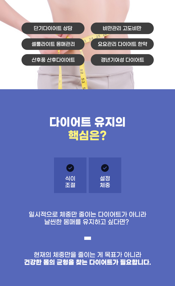 비만으로 인한 문제가 알려지면서 더욱 한방 다이어트 방법을 알고 싶어하는 분이 늘어나는 것 같다는 생각이 드는데요, 한방 다이어트 방법을 찾는 분의 경우 식욕 조절이 힘들어서, 음식 조절을 더 쉽게 할 수 있는 한약을 찾거나, 다이어트 과정에서 빠지지 않는 살을 더 쉽게 빼고 몸의 순환을 돕는 방법을 찾는 경우가 많은 것 같습니다.