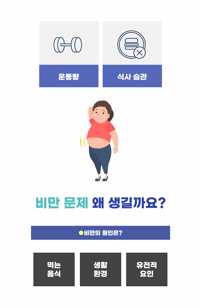 환경적 요인, 심리적 문제, 질병이나 약물의 영향, 가족력과 유전적 요인 등 다양한 요인이 비만에 영향을 준다고 합니다. 바쁜 직장인인데 매일 늦게 퇴근해 야식을 먹는 거로 스트레스를 푼다는 분이 있는데요, 이런 이유로 비만이 되었다면 자신의 심리적 상태, 직장으로부터 받는 스트레스 등을 점검하고 스트레스를 줄이기 위한 노력 및 스트레스를 건강하게 해소하는 방법을 찾는 게 필요하겠습니다.