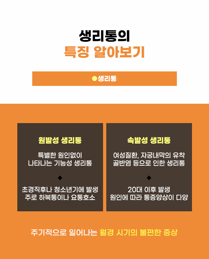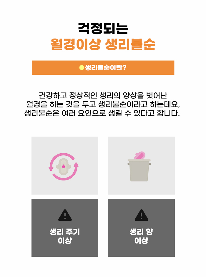이런 질환이나 자궁 내 이상으로 인해 생리통만이 아니라 생리 양 이상, 주기 이상 등의 생리불순 문제가 생길 수도 있다고 합니다. 여성의 큰 고민이 될 수도 있는 생리통과 생리불순 문제를 겪는다면 시간이 더 지나며 원인이 되는 질환이 악화되기 전에 문제를 충분히 파악할 수 있었으면 합니다!