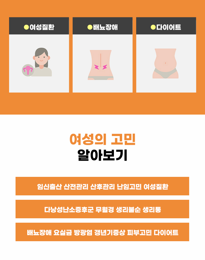 신체 구조의 차이 때문에 여성에게만 생기거나 혹은 여성에게 주로 더 많이 나타나는 질병으로는 자궁질환이나 배뇨질환 등이 있다고 합니다. 특히 여성의 질환 같은 경우, 많은 부분이 완전히 밝혀지지 않았는데요, 현대에도 미지의 영역에 있는 부분이 많다 보니 파주주말진료 한방 정보를 찾고 고민에서 벗어나고 싶어 하는 분이 더욱 많은 것 같다는 생각이 듭니다.