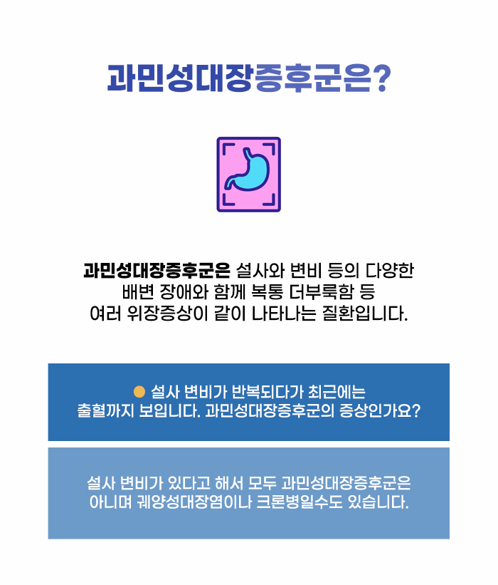 과민성장 원인은 알기 어렵다고 하는데요. 하지만 식사 습관, 생활 습관, 스트레스 관리 등과 연관성이 클 수도 있다고 합니다. 현재 위장 기능 문제, 배변 장애 문제가 염려되는 분이라면 건강한 습관을 갖고 활력있는 일상을 지킬 수 있었으면 합니다.