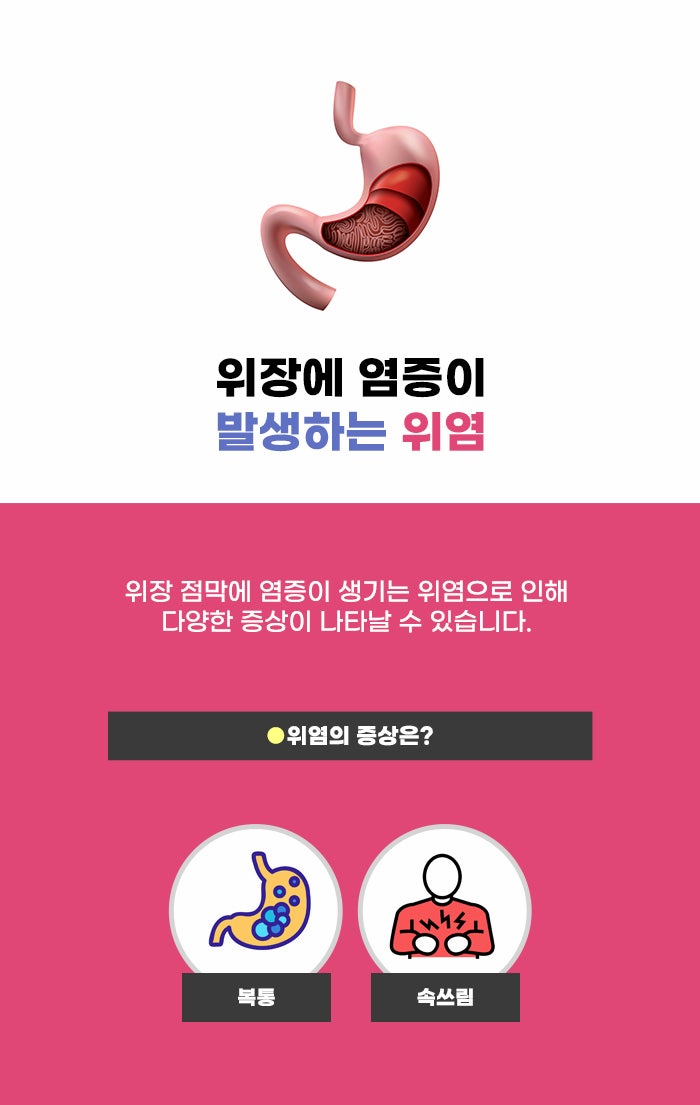위염에 대한 정의는 조금씩 다르지만, 보통 위장에 염증이 생긴 상태를 두고 위염이라고 합니다. 보통 속이 쓰리거나 심와부 통증이 있을 때, 메슥거림, 가슴쓰림 등의 증상이 있을 때 위염이 아닐까 고민하고는 합니다. 먹은 음식이 모이고, 소화가 본격적으로 시작되는 부분이 바로 위인데요, 위는 주머니 모양의 장기로 식도 아래 이어져 있습니다.