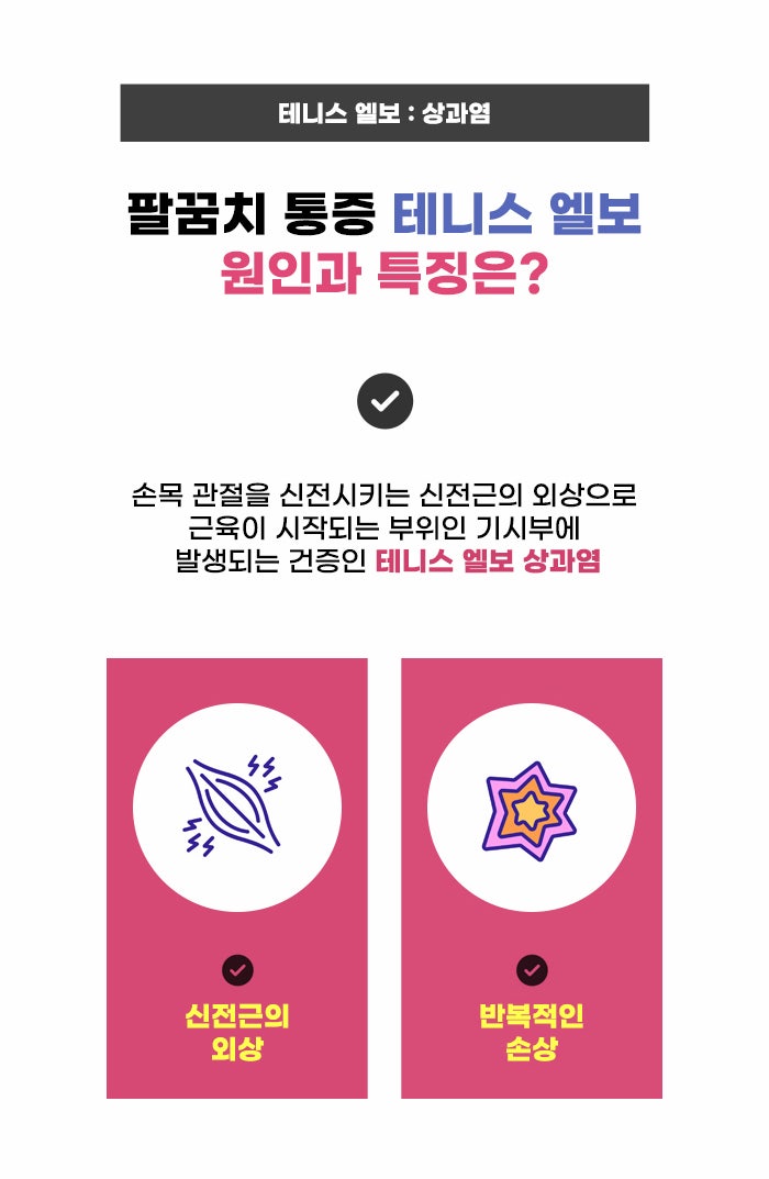 하지만 건증의 경우 반복적인 과도한 사용에 의해 건에 미세한 파열이 생기게 되고, 회복될 시간이 부족한 상태에서 정상적으로 건이 치유되지 못하며, 불완전한 상태로 치유되며 퇴행성 변화가 나타나는 경우를 뜻한다고 합니다. 테니스 엘보 문제가 생길 경우 팔꿈치 외측에서 점차 통증이 심해지는 경우가 있는데요. 이를 두고 외측 상과염이라고 합니다.