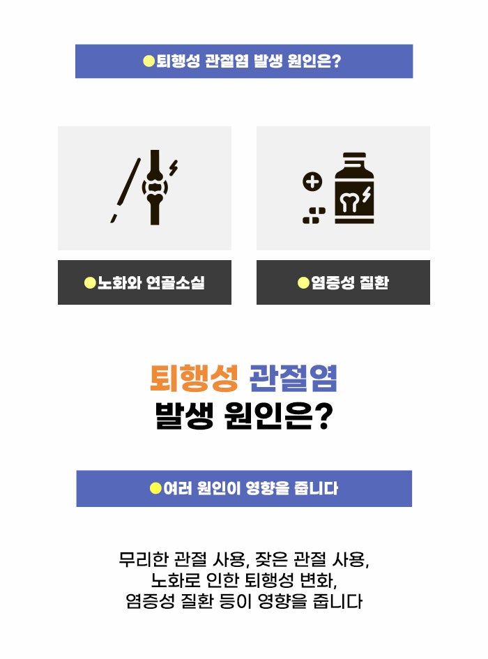 과체중, 그리고 과체중을 넘어 비만이나 고도 비만 상태인 분은 관절 건강에도 적신호가 켜질 수 있다고 하는데요. 무릎 부분에 통증이 생겨 고민하는 경우도 있다고 하며 반복된 관절 통증으로 인해 어려움을 겪는 것 외에도 발바닥 부분에 통증이 생기고 당김이 있어서 고민하는 분도 있다고 합니다. 이 페이지를 통해 과체중, 비만인 분에게 더욱 큰 위협이 될 수 있는 퇴행성 관절염 정보에 대해서 알아보셨으면 합니다.