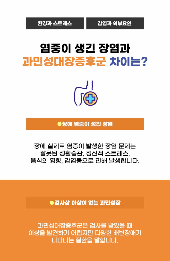 염증이 발생한 장염과 원인을 찾기 어려운 과민성장 문제