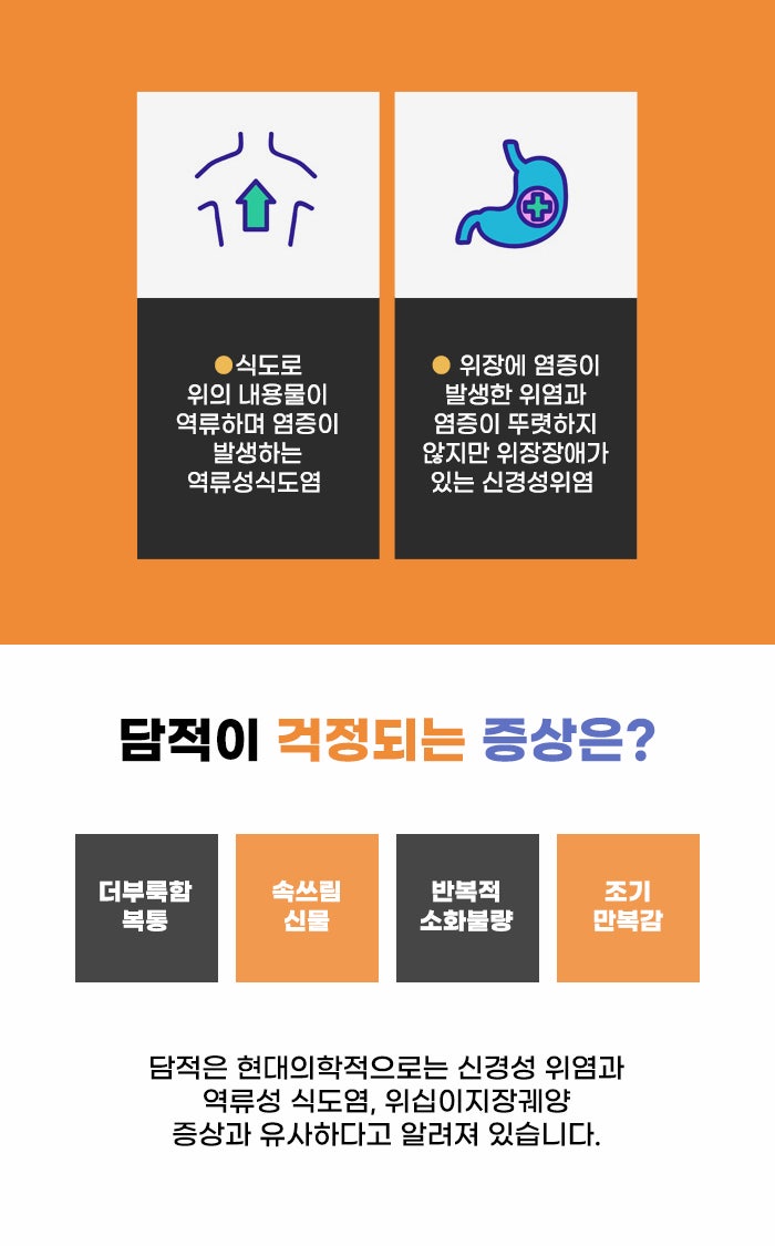 현대의학으로는 담적은 신경성 위염과 역류성 식도염 질환, 그리고 위십이지장 궤양 같은 증상과 비슷할 수도 있다고 알려져 있는데요. 현재 소화가 자주 안 되거나, 조금만 음식을 먹어도 금방 과도한 포만감이 드는 경우, 배가 자주 아프고 잔변감이 있는 경우 담적에 대해서 걱정하고 파주담적병 정보를 찾아보시는 경우가 있는 것 같습니다.