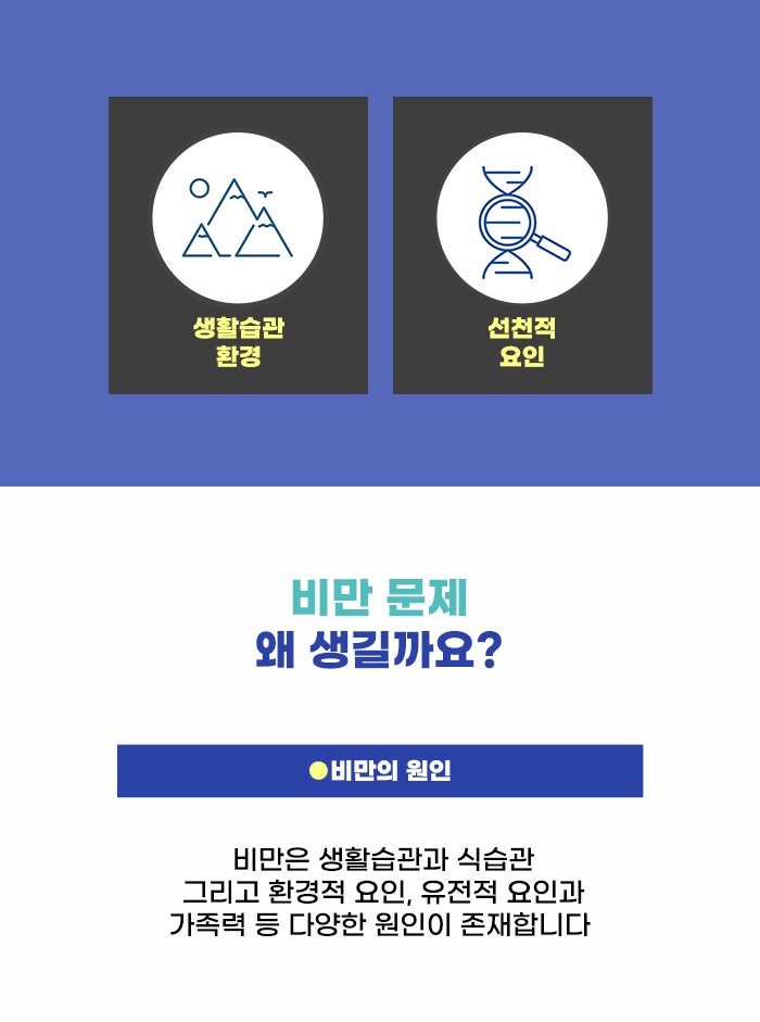 체지방량이 체중의 30% 이상일 경우 여성 비만으로 보기도 합니다. 영양분을 섭취 후 몸에 남는 잉여 영양분이 지방으로 저장된다고 하는데요, 몸에 과도하게 지방이 쌓인 상태인 비만은 에너지와 활동량의 불균형이 오랜 시간 몸에 축적된 상태라고 볼 수 있겠습니다. 그런데 이런 운정 다이어트 한의원 고민되는 비만 상태는 각종 성인병의 위험을 불러오는 상태라고 합니다.