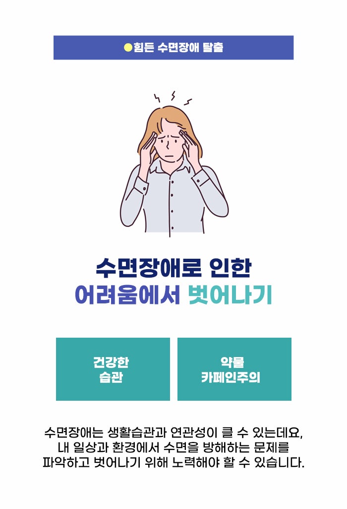 잠자는 시간이 부족하다고 해서 무조건 불면증은 아닐 수 있습니다. 일이 밀려 바쁜 상태에서 잠을 못 자는 상태나, 출장을 가거나 여행을 떠난 장소에서 며칠 잠을 설치는 것 등은 불면증으로 보지 않기도 하는데요, 잘 수 있는 시간과 기회가 적절하게 주어져 있지만 잠에 들기 힘든 것, 수면의 질이 떨어지는 것을 두고 수면장애, 불면증으로 본다고 합니다.