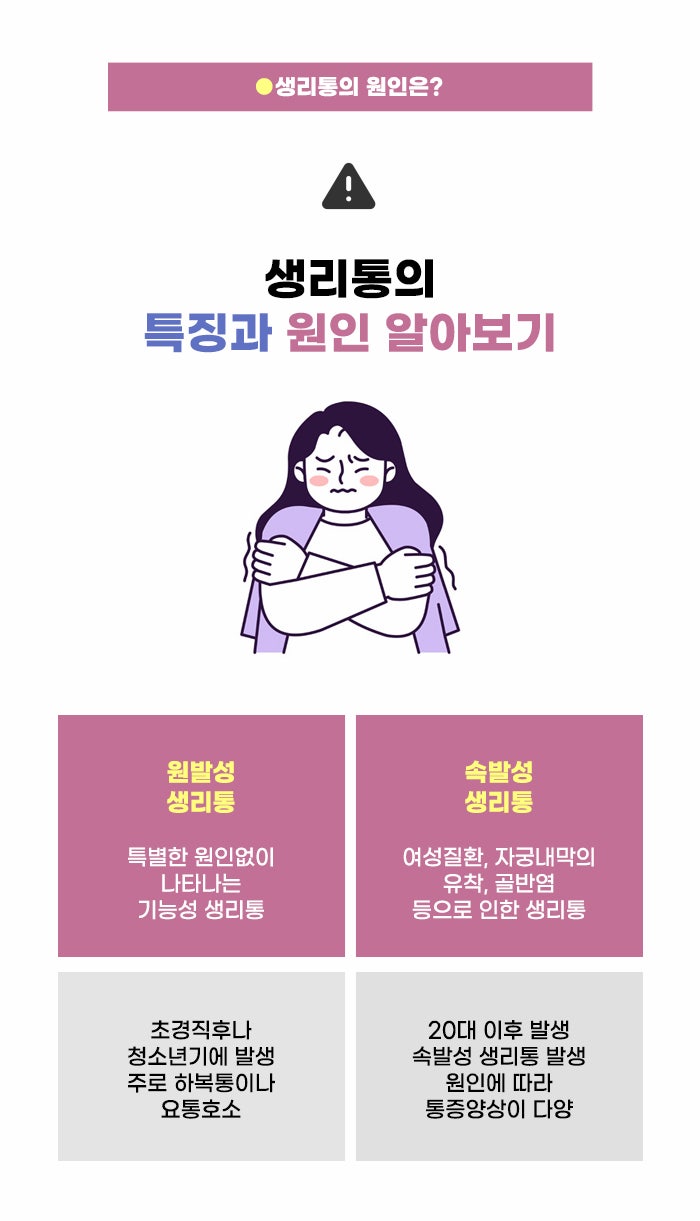 이런 생리통 원인 질환과 문제는 생리불순을 불러오는 이유가 되는 경우도 있는데요. 그렇기에 생리통 증상 그리고 생리가 불규칙하거나 정상적인 양상에서 벗어난 생리불순이 함께 있는 경우라면, 더욱 꼼꼼히 나의 몸 상태를 체크하셨으면 합니다!