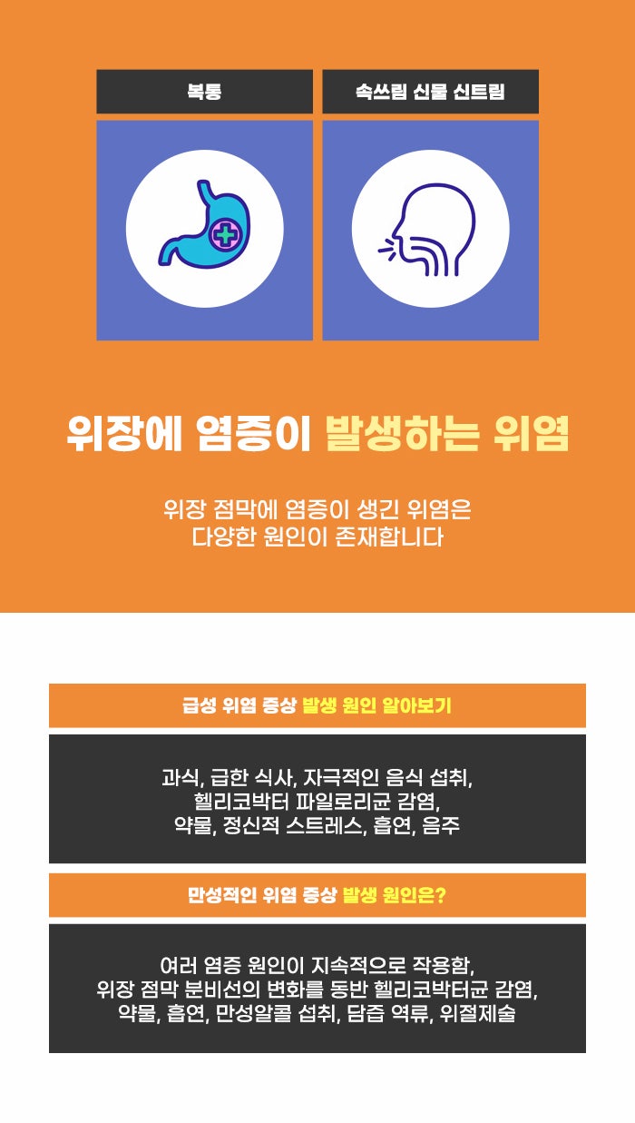 위염은 특히 여러 위장장애 문제 중 가장 흔한 증상이라고 알려져 있는데요. 그렇기에 운정 식체 소화불량 걱정하는 분의 경우에도 위염 문제를 겪는 경우가 적지 않다고 합니다. 위염은 급성 위염, 그리고 만성적으로 증상이 생기는 만성 위염으로 나눌 수도 있습니다. 그리고 급성 위염을 발생시킨 원인이 사라지지 않고 이어지며 만성적인 위염 증상이 될 수도 있다니 참고하셨으면 합니다!