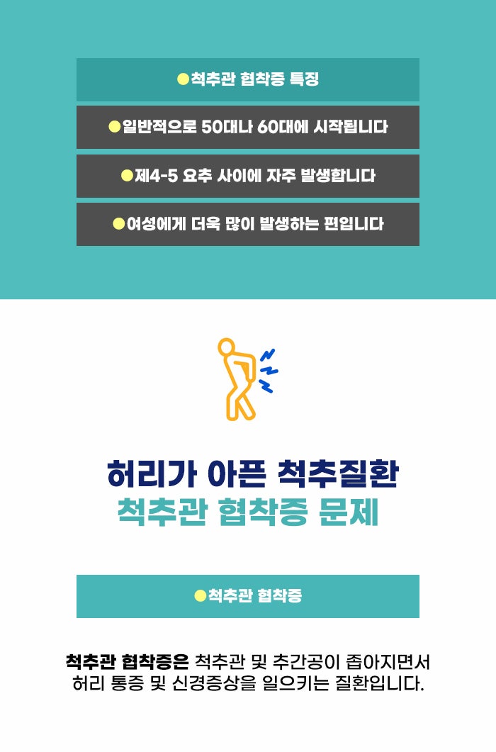 허리 통증이 있는 것은 디스크 문제와 비슷하지만, 걸을 때 엉덩이 부근으로 타는 것 같은 통증, 찌르는 것 같은 통증이 생기는 게 특징인 질환이 있는데요. 바로 척추관 협착증이라고 합니다. 신경이 지나는 통로인 척추관이 좁아지는 질환이라고 하는데요. 현재 운정허리디스크 통증 고민이 된다면 비슷하지만 다른 질환일 수도 있고 여러 원인이 있을 수 있기에 꼼꼼히 문제를 파악할 수 있었으면 합니다.