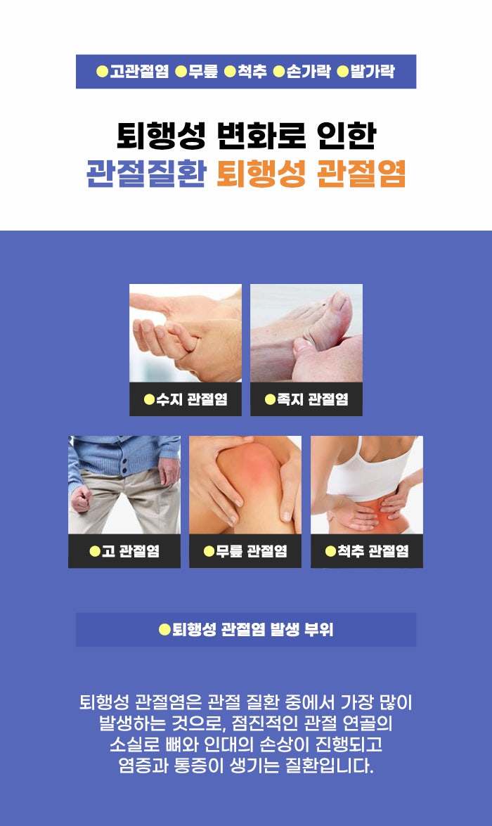 연골을 사용하면서 소실되는 게 퇴행성 관절염의 중요 원인이라고 합니다. 그렇기에 관절을 더 오래 사용해 왔던 분들, 젊은 층보다 중년 이후 고령층에게 더 많이 발견되는 편이라고 합니다. 현재 고관절이나 다른 관절이 아프고 뻣뻣하다면 참고하셨으면 합니다.
